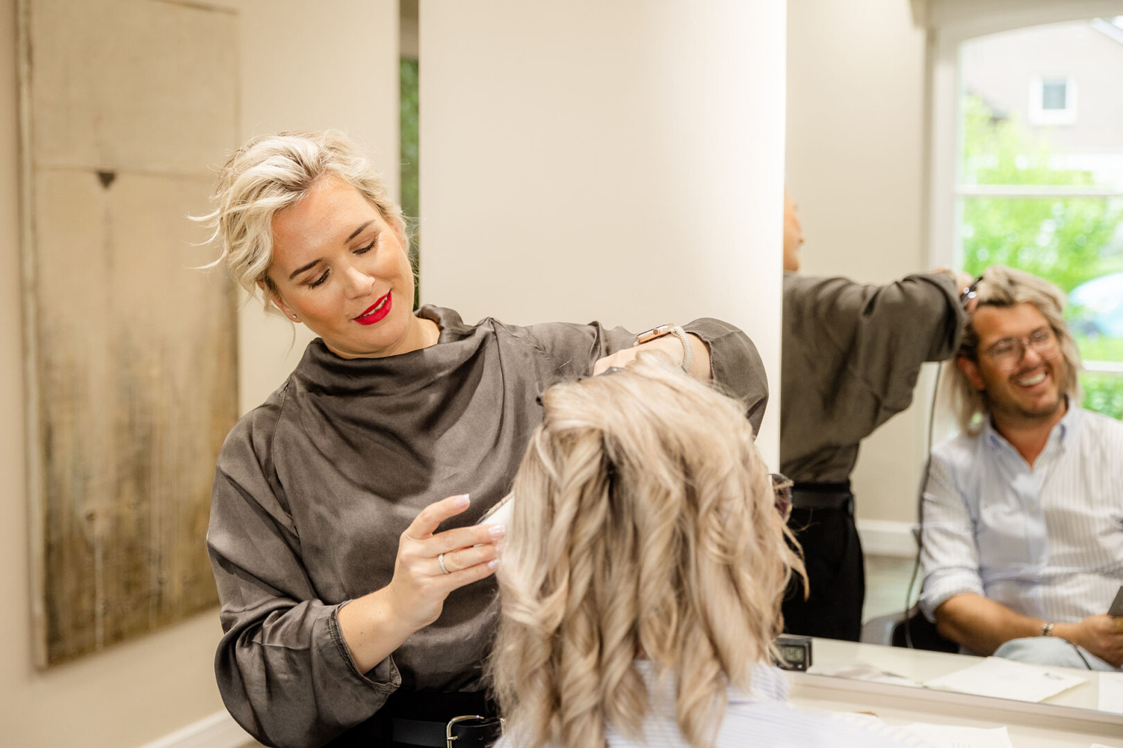 Die Atmosphäre im Salon war locker und gleichzeitig fokussiert. Man spürt sofort die Professionalität des Teams und den respektvollen Umgang miteinander. Dieses Selbstverständnis überträgt sich direkt auf die Kamera.