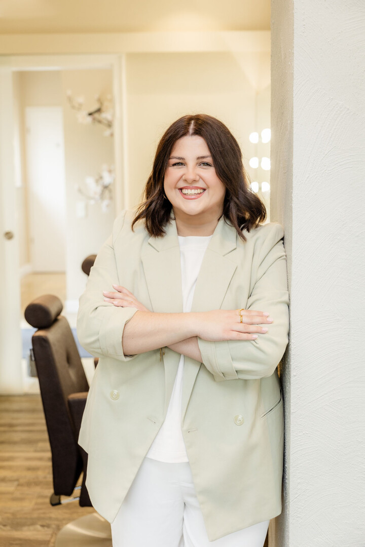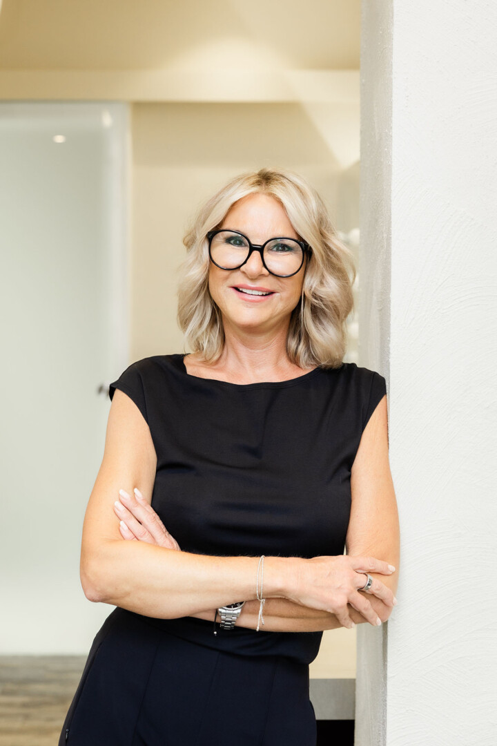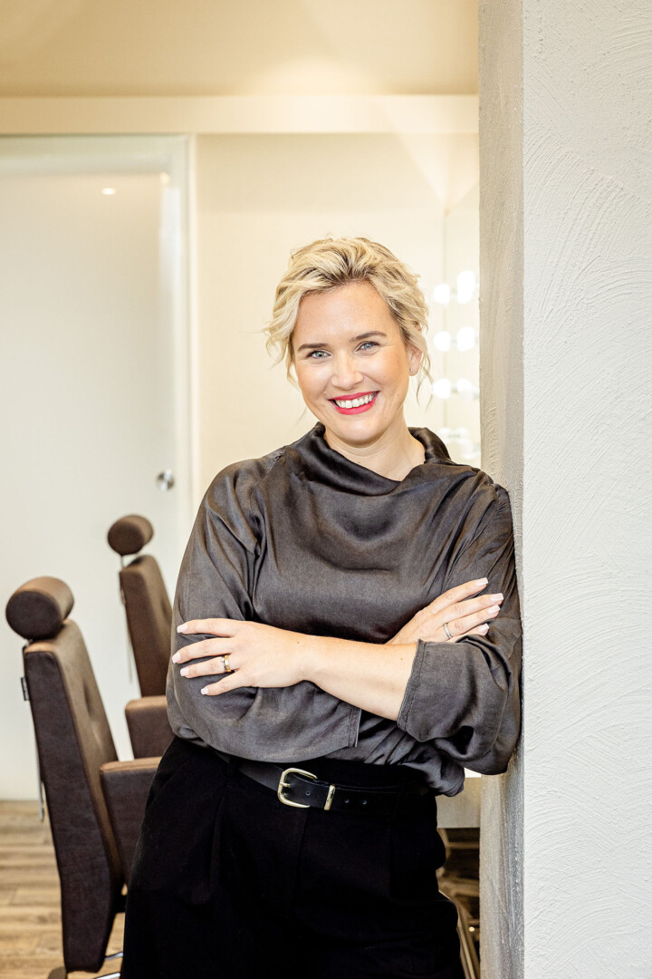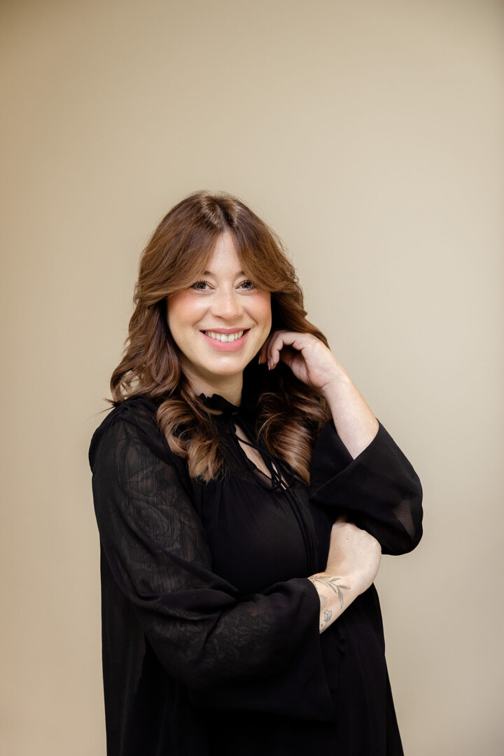 Die Kombination aus Beige und Schwarz schuf zwei reduzierte Farbstile, die Ruhe und Eleganz ausstrahlen. In Verbindung mit hellem, natürlichem Licht entstanden Portraits, die modern, freundlich und professionell wirken.
