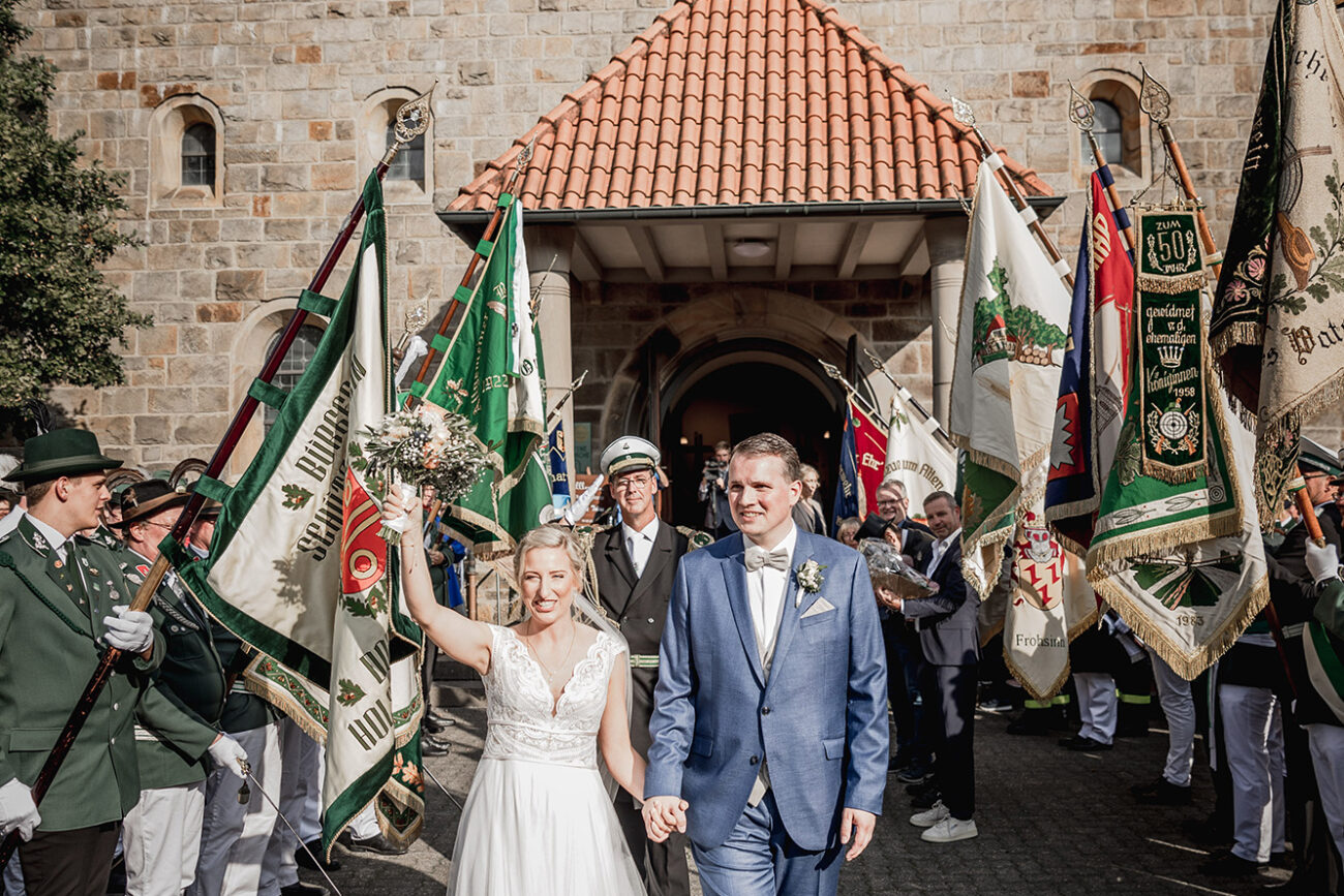Die kirchliche Trauung fand in der St. Matthäus Kirche in Wulfen statt, bei der u.a. Ministerpräsident Hendrik Wüst und Landrat Bodo Kimpel anwesend waren. Eine ganz neue Erfahrung für mich, die mich auch ein bisschen stolz macht.