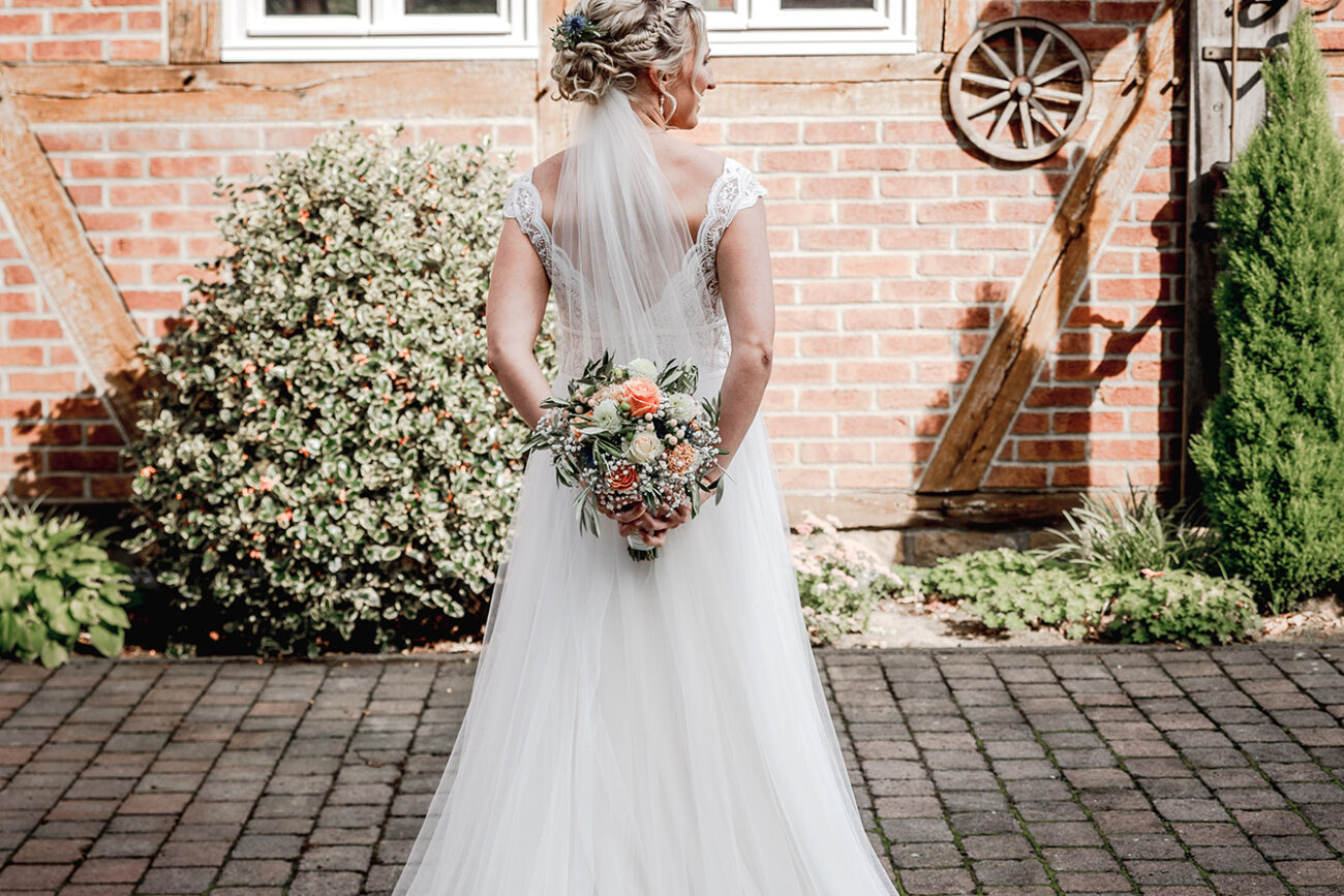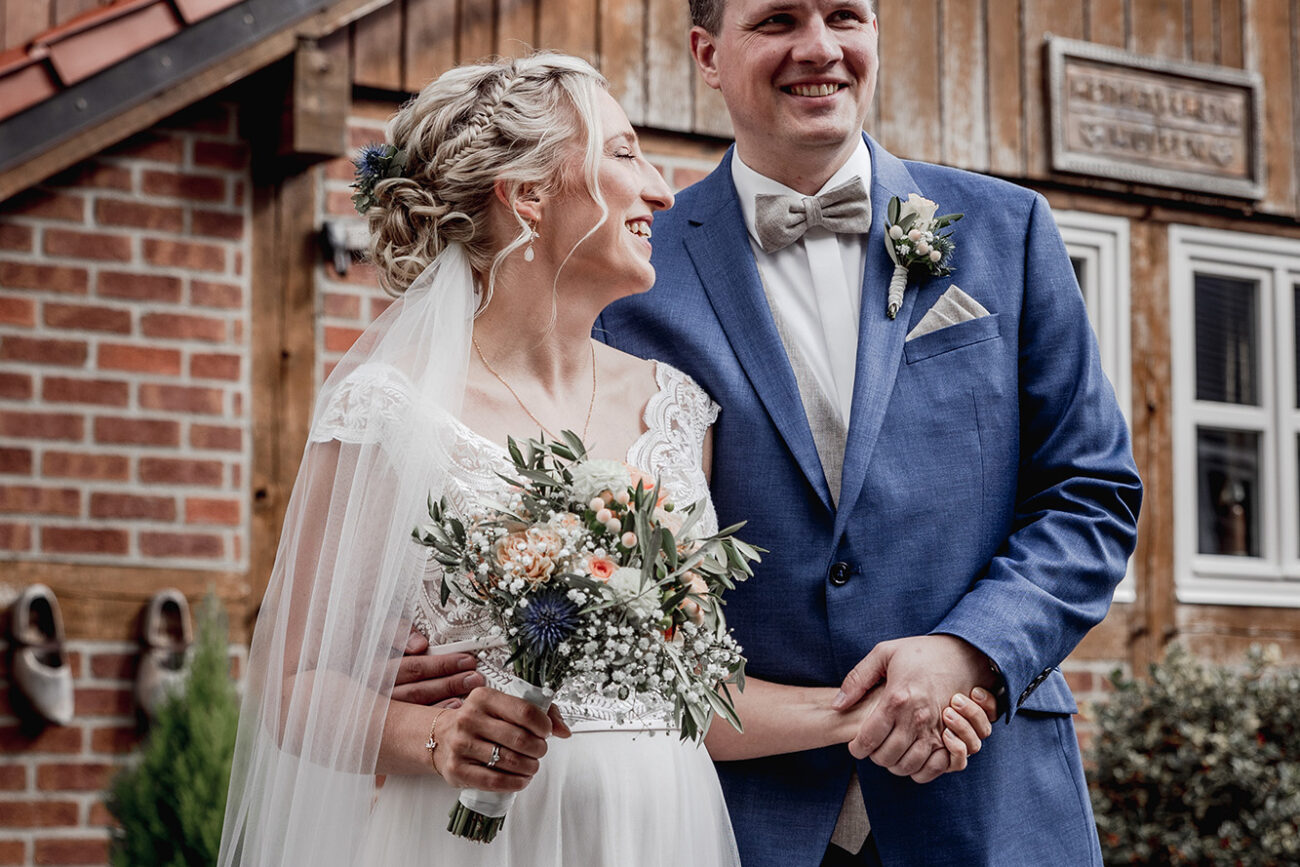 Den First Look und das Portrait-Shooting haben wir am Heimathaus in Wulfen fotografiert.