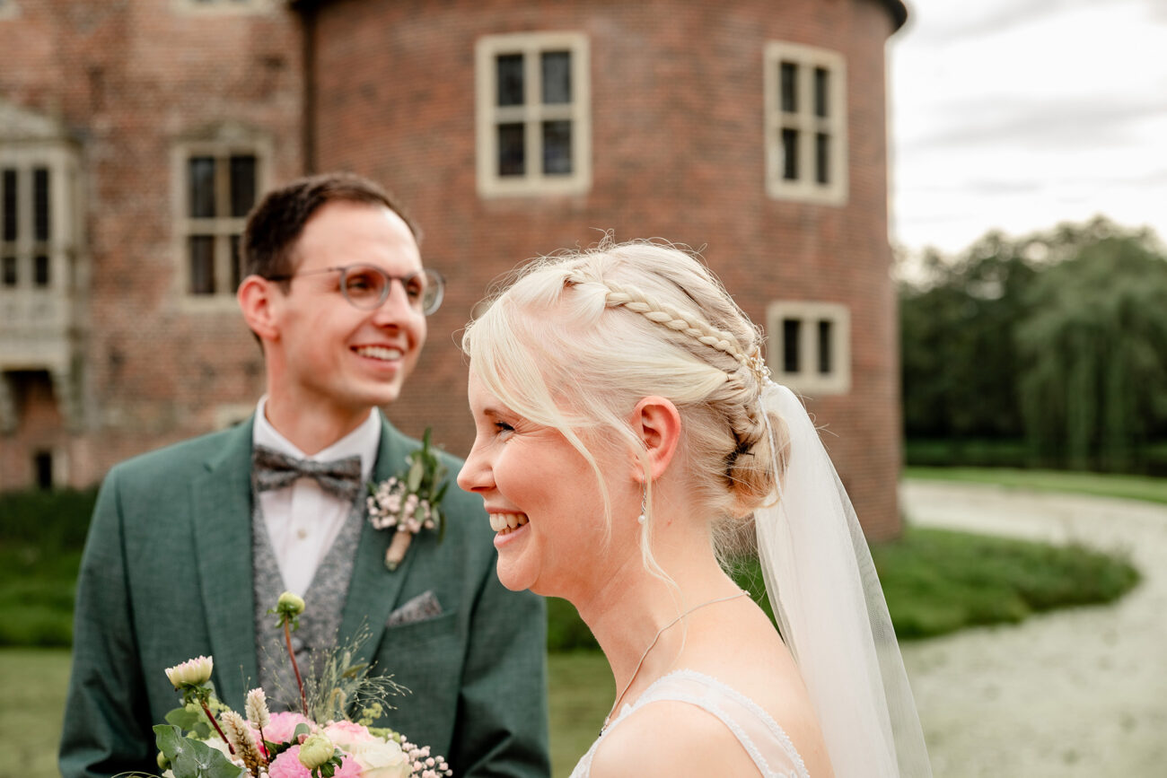 Stefanie & Lukas gaben sich im wunderschönen Schloss Raesfeld das Ja-Wort – eine traumhafte Kulisse für ihren großen Tag. Obwohl wir uns vorher nicht kannten, war die Verbindung sofort da, und wir konnten ganz natürliche, wunderschöne Bilder einfangen. Ich liebe es, mich auf neue Menschen und Situationen einzustellen – genau das macht jede Hochzeit einzigartig.